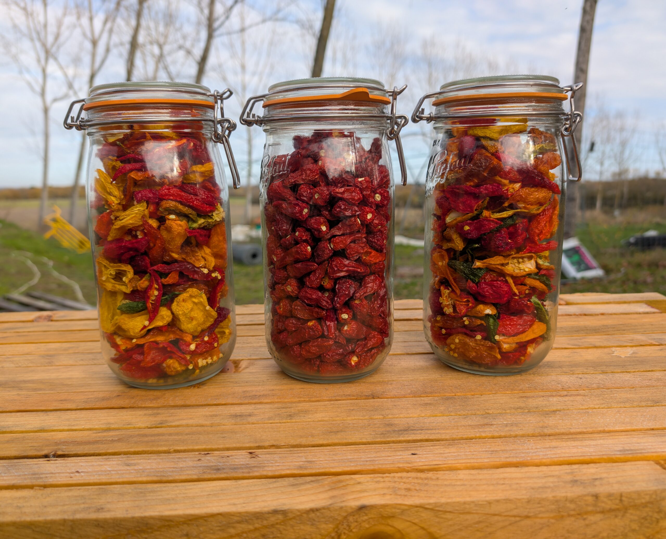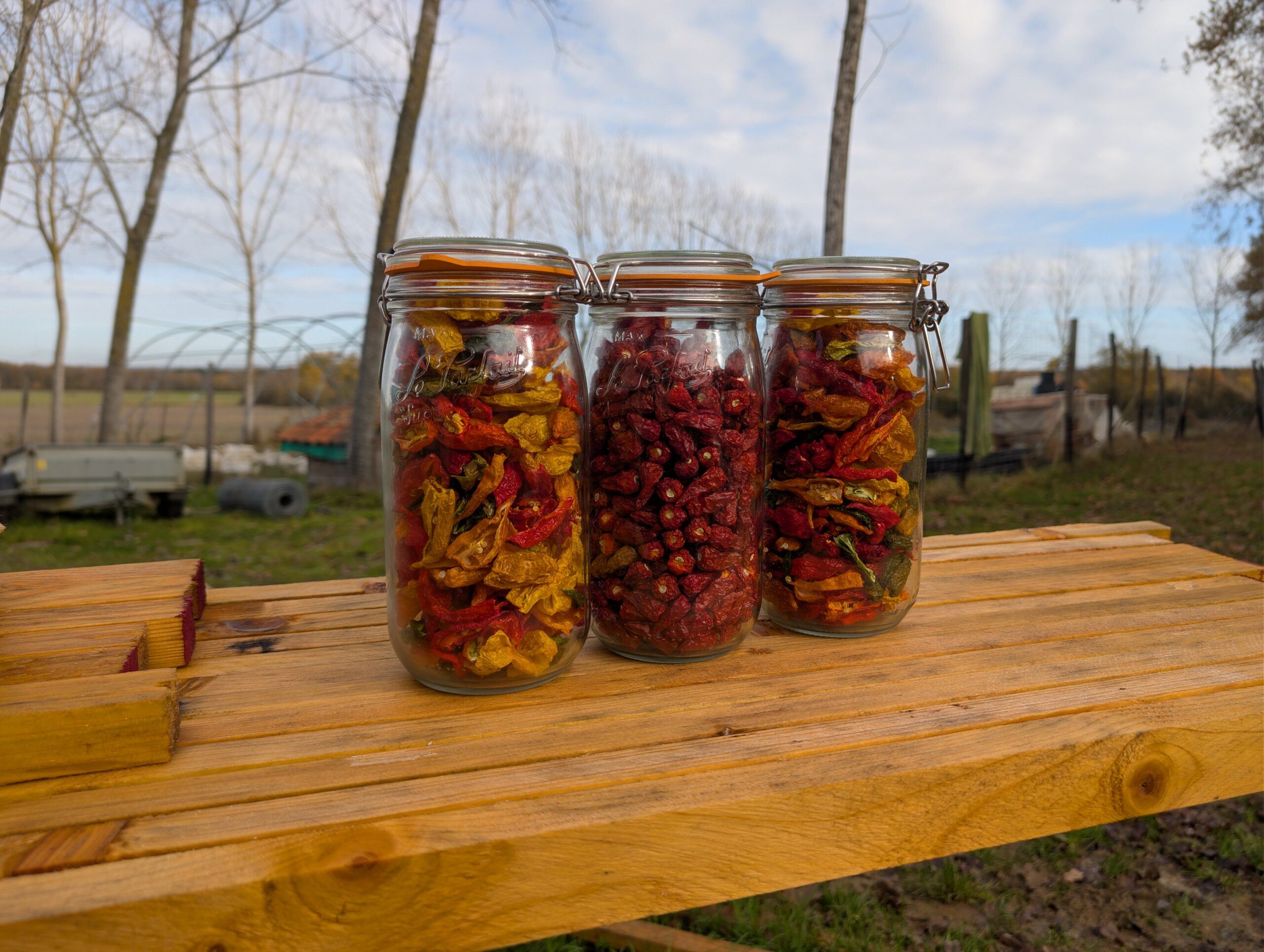 Heureusement, la nature est généreuse et une deuxième récolte, plus petite, est arrivée. Pas question de faire la même erreur deux fois ! J’ai embarqué mes piments et je suis allé squatter chez un ami qui possède un déshydrateur électrique.
